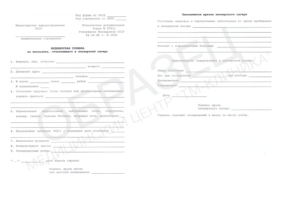 Для чего требуют медицинскую справку в детский лагерь по форме 079у