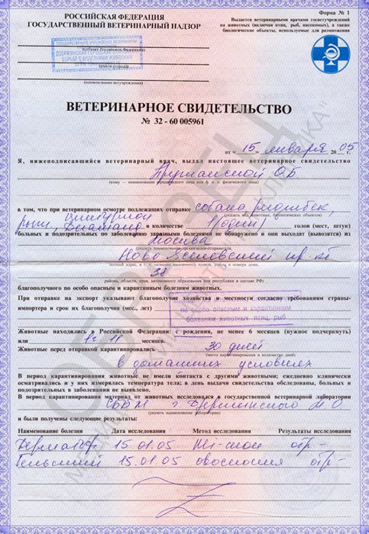 Ветеринарная справка для перевозки животных