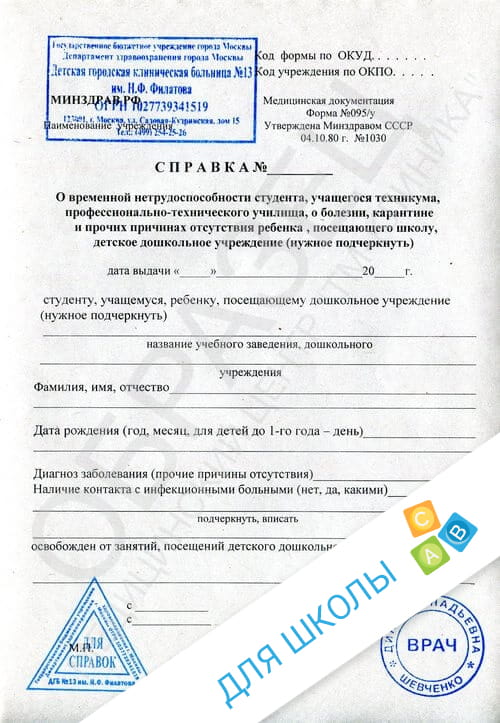 Менеджер обращается только в клиники, с которыми мы сотрудничаем и регулярно заказываем бумаги. Это наши постоянные партнеры, которые не отказывают в оформлении. Наша справка в школу после болезни пройдет любые проверки: