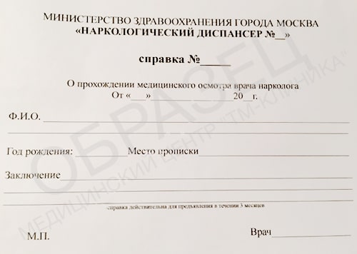 Цена справки из наркологического диспансера в Москве